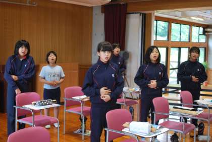 一生懸命に「つばさをください」を歌っていました。お腹を使って深いところから息を出すことを意識しながら歌いました。