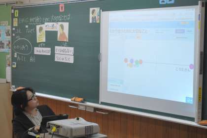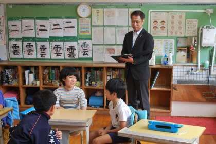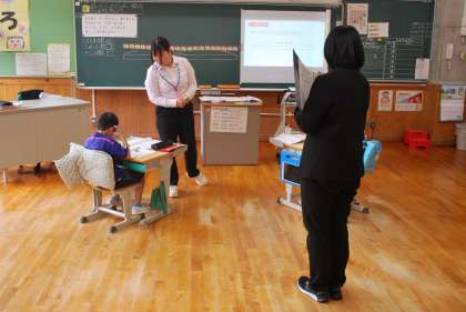 豊田市教育委員会の方たちが子どもたちの様子を視察するために萩野小学校に来られました。「お客さんが来る」ということで、どの子も大張り切りでした。