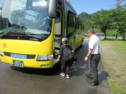 旭高原自然の家で今日から1泊2日のキャンプが行われています。明け方は雨が降っていて天候が心配されましたが出発するころには雨も上がり、バスに乗って元気に出発しました。
