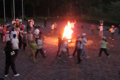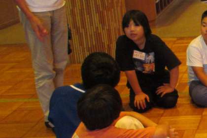 各グループに分かれて行うキャンプファイヤーのスタンツの最終確認では、にこやかな表情で他校の子たちと話していました。歌やゲーム等、様々なプログラムを通して、楽しい時間を過ごしていました。