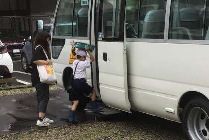 バスに乗って足助プールに行くときは、雨模様の天気でしたが、足助プールで水泳学習を始める頃には、雨も上がってきました。