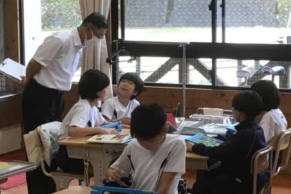 学校運営協議会終了後、委員の皆様に子どもたちの学習の様子を参観していただきました。「子どもたちが楽しそうに授業を受けていますね」「上手にタブレットを操作しながら授業を受けているんですね」等々、感想をいただきました。