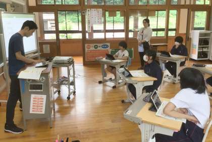 授業中にICT機器のトラブルが起きても、ICT支援員さんが適切に対応してくれるので、学習用タブレットを活用した授業がスムーズに進められます。6限開始早々、停電になりましたが、ICT支援員さんが本校に来ていただいたので、滞りなく授業ができました。
