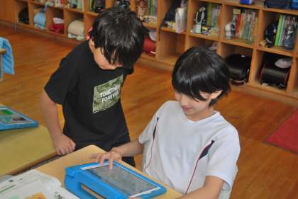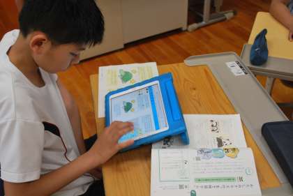 学んだことを生かして、好きな生き物や気になる生き物について調べ、分かったことを文章にまとめてリーフレットを作っていました。