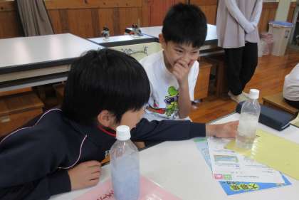 また、ティッシュペーパーとトイレットペーパーの溶け方を比べる実験も行い、似たような紙でもティッシュペーパーは水に溶けないことが分かりました。ティッシュペーパーを水に流すと下水道が詰まり、大変なことになることを学びました。