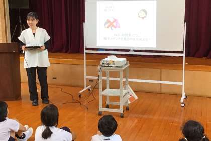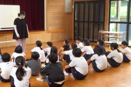 夏休み中の生活や健康についての話、貸し出した本の取り扱いについての連絡を聞きました。子どもたちは、きちんとした態度で話を聞いていました。