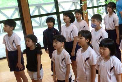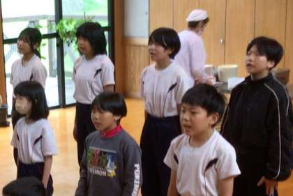 最後に校歌を歌いました。元気な歌声です。