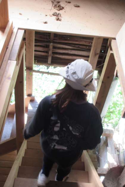 階段を降りると足助川に出ます。2年前から、この場所で川に学ぶ会を行なっているので、その下見もしました。