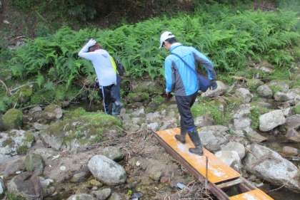 最後の目的地「お姫滝」に向かいます。暑さと疲労で心が折れそうになりましたが、互いに励まし合いながら山道を歩きました。
