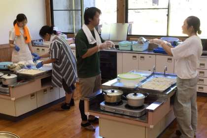 子ども会・PTA役員の方たちは萩野自治区防災訓練に参加しながら、午後からの「流しそうめん」の準備に大忙しでした。ありがとうございました。