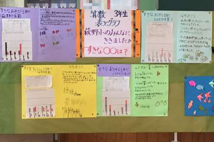 以前、「表とグラフ」の単元で学習した内容を活用して、一人一人が好きなものランキングを棒グラフに表しました。