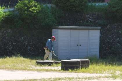 校内整備員さんに草刈りをしていただきました。倉庫周りも丁寧に刈っていただきました。ありがとうございました。