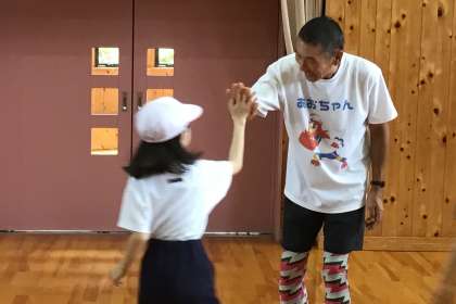 最後に、子どもたちは「青ちゃん、バイバイ」と笑顔でハイタッチをしました。子どもたちの後、先生たちも青戸さんとハイタッチをしました。