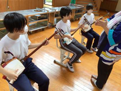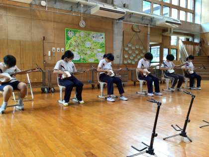 講師として民謡協会芳泉会の方をお招きし、三味線体験を行いました。児童たちは、三味線で「きらきら星」を演奏するために、夢中になって三味線練習に取り組んでいました。