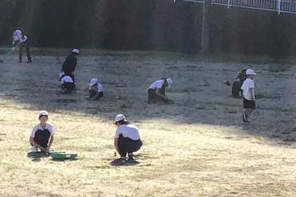 1限が始まる前に全校で草取りをしました。限られた短い時間の中で、一生懸命に取り組みました。