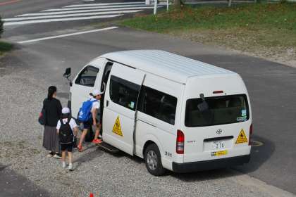 やまびこ学級の子たちが足助中学校で校外学習をしました。出発前の子どもたちは、とても楽しみにしている様子でした。