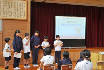 学校保健委員会の始めに、先日、全校児童対象に行った電子メディアに関するアンケート結果の発表をしました。