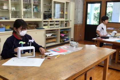 子どもたちはクランクの仕組みをもとに、作りたいものを思い付いたり、動きを工夫したりしながら、楽しく活動していました。