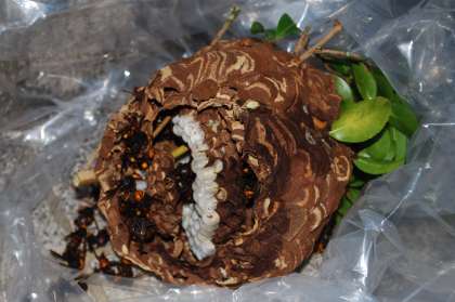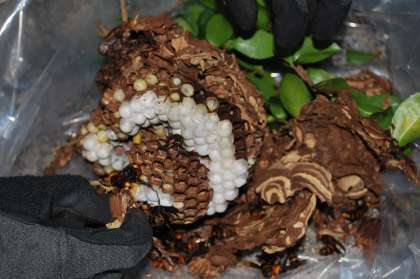 駆除したスズメバチの巣を見せてもらったら、巣の大きさは子どもの頭ほどの大きさでした。