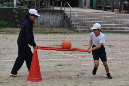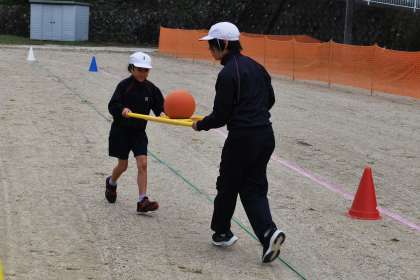 親子種目の練習をしました。親子種目に参加していただく際には、ケガ防止のため、履き慣れた運動靴をご用意ください。