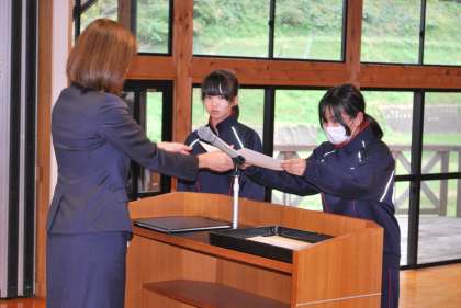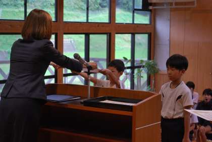 式が終わった後、夏休みの応募作品で優秀だった子の表彰を行いました。