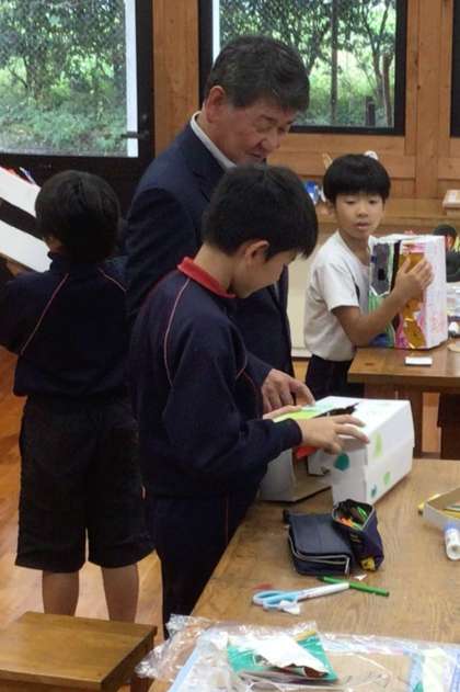 授業の様子を参観され、子どもたちと楽しく触れ合っていました。また、職員にも気軽に声をかけていただきました。