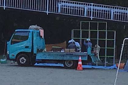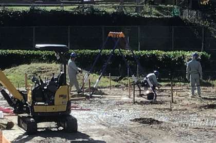 新しく設置される遊具が運動場に運び込まれ、取付工事が始まりました。どこに、どのような遊具が設置されるのか楽しみですね。