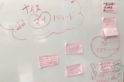 昨日、5,6年生が音楽の研究授業で「マイバラード」の合唱を参観した先生たちに披露しました。子どもたちの合唱を聴いた先生たちの感想が、5,6年教室の白ボードに掲示されていました。