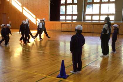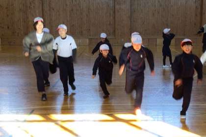 給食後、全校遊びで「オオカミさん 今何時?」をしました。「鬼ごっこ」と「だるまさんが転んだ」を組み合わせたような遊びでした。