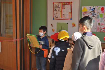 東広瀬小学校1年生を招いて交流会をしました。学校案内では、本校の2〜4年生が先導し、元気な声で説明することができました。