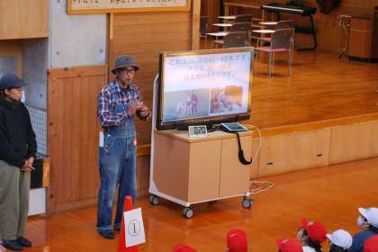 動物へのえさやり体験の後、多目的ホールに移動し、動物クイズ大会をしました。2年生が司会進行を務め、大盛り上がりでした。