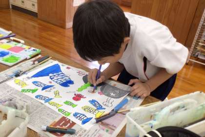 活動を通して、筆につける水の量によって色の濃淡が変化したり、2色を混ぜると違う色になったりすることに気付きました。