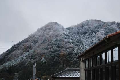 茜色や山吹色に染まっていた三角山が真っ白になりました。子どもたちに聞いたら、昨日の夜に雪が降り始めていたとのことでした。これから益々寒さが厳しくなります。お身体をご自愛ください。