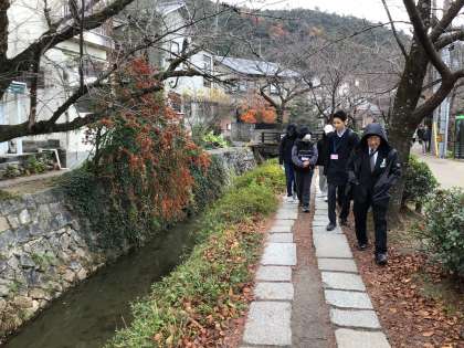 タクシーを降りて、哲学の道を通って入り口に向かいました。