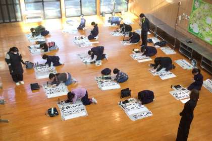 教室や多目的ホールでは、張り詰めた空気に包まれ、筆や鉛筆を動かす姿が見られました。