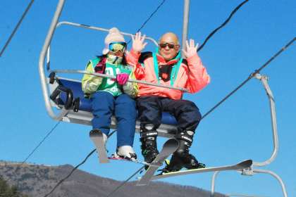 午後の部がスタートしました。リフトに乗って上の方から滑り降りました。