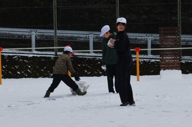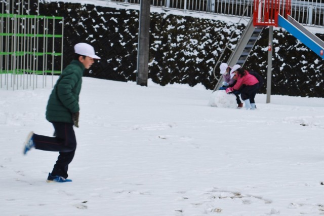 子どもたちは休み時間になると運動場に出て、雪だるまを作ったり、雪合戦をしたりして休み時間を過ごしました。