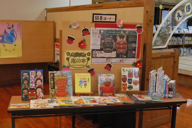 現在、学校では節分や鬼が出てくる絵本を集めて展示しています。この時期ならではの楽しい展示で、季節の行事への関心を高めるように工夫されています。