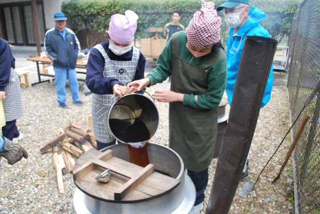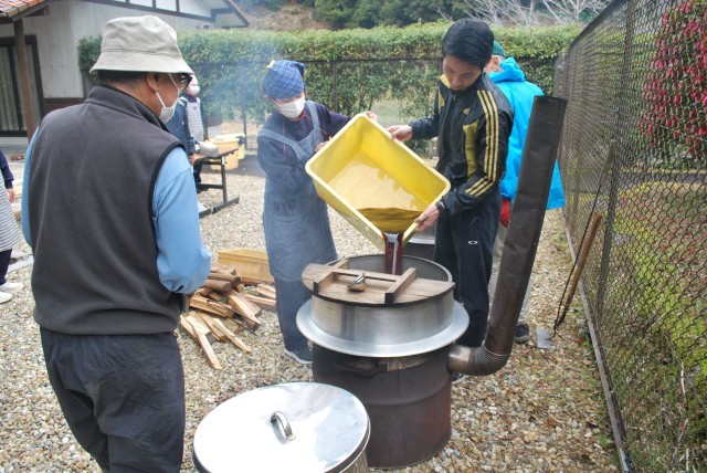 搾り出した醤油を加熱処理して、灰汁を取る作業をしました。
