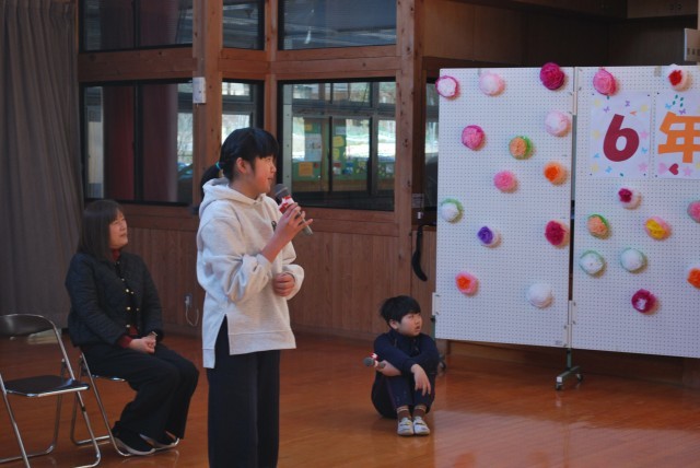 6年生入場の後、各学年の出し物が行われました。2年生の出し物は「6年生クイズ」でした。6年生一人一人にまつわるクイズが2年生から出題された後、6年生による正解発表のときは大盛り上がりでした。