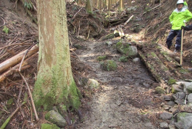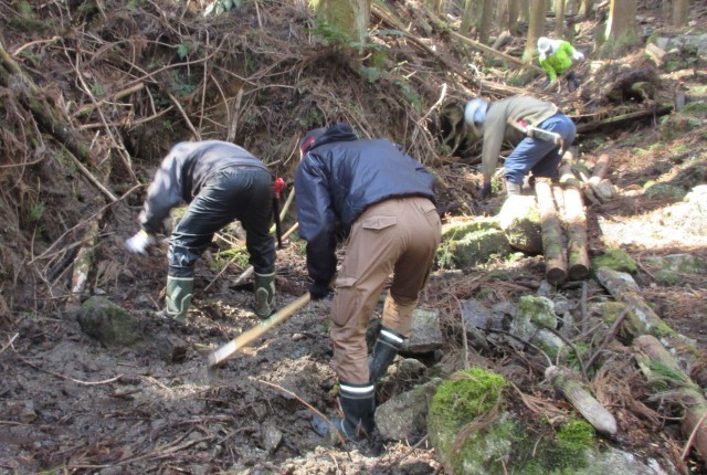 昨年の熊騒動の影響で12月実施予定だった三角山整備作業が中止になりました。そのため、登山道が整備されていない状態で、来年度4月末に三角山登山を実施するのは心配です。子どもたちが安全に三角山頂上を目指して登山をするために、整備する場所を絞って整備作業を行いました。