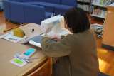 学校図書館司書さんが、読み聞かせで使う紙芝居セットのカバーを作っていました。も...