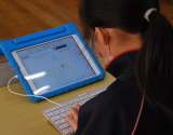 タイピングを素早く行うために、五つの指をすべて使います。ICT支援員さんも上手...