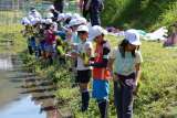 お礼の言葉を児童代表が言います。 この後の管理は、稲刈りまで地域の方々が世話をし...