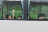 今年度最後の水遊びや水泳の学習を行うために、子どもたちはバスに乗って足助プール...