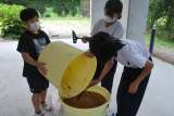 給食後の休み時間に5,6年生が協力して天地返しの作業をしました。作業をしている...