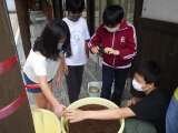 5・6年生はしょうゆの「天地返し」を行っていました。
