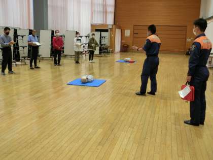 本日、菅田様他5名の消防署員の方をお迎えし、救命講習とシミュレーション研修を行いました。救える命がきちんと救えるよう、ご指導いただいたことを生かして、いざという時に備えたいと思います。