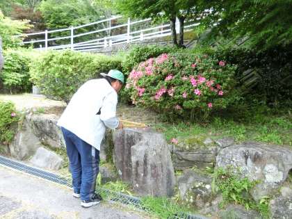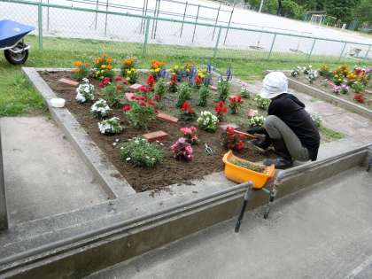 公務手さんのおかげで、花山小学校が 緑いっぱい はないっぱいです。