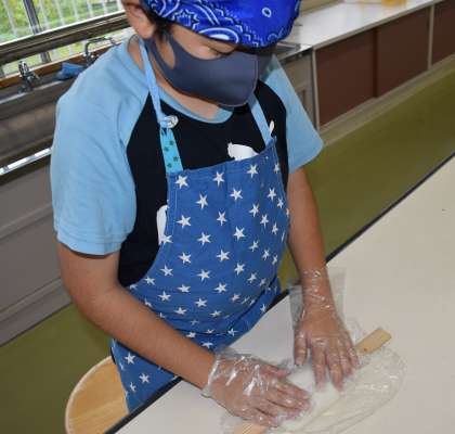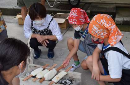7月6日(火)、5年生が地域講師の鈴木さんをお招きして、「五平もち作り」を行いました。香ばしい味噌だれの香りが学校中に広がっていました。